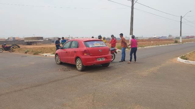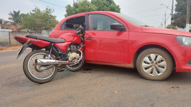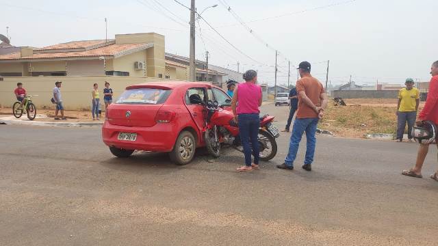 Um acidente envolvendo uma motocicleta e um carro ocorreu no início da tarde desta sexta-feira, 6, em Vilhena.