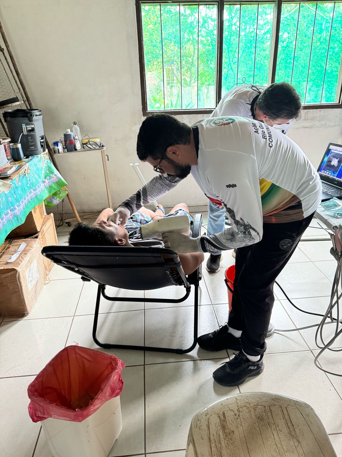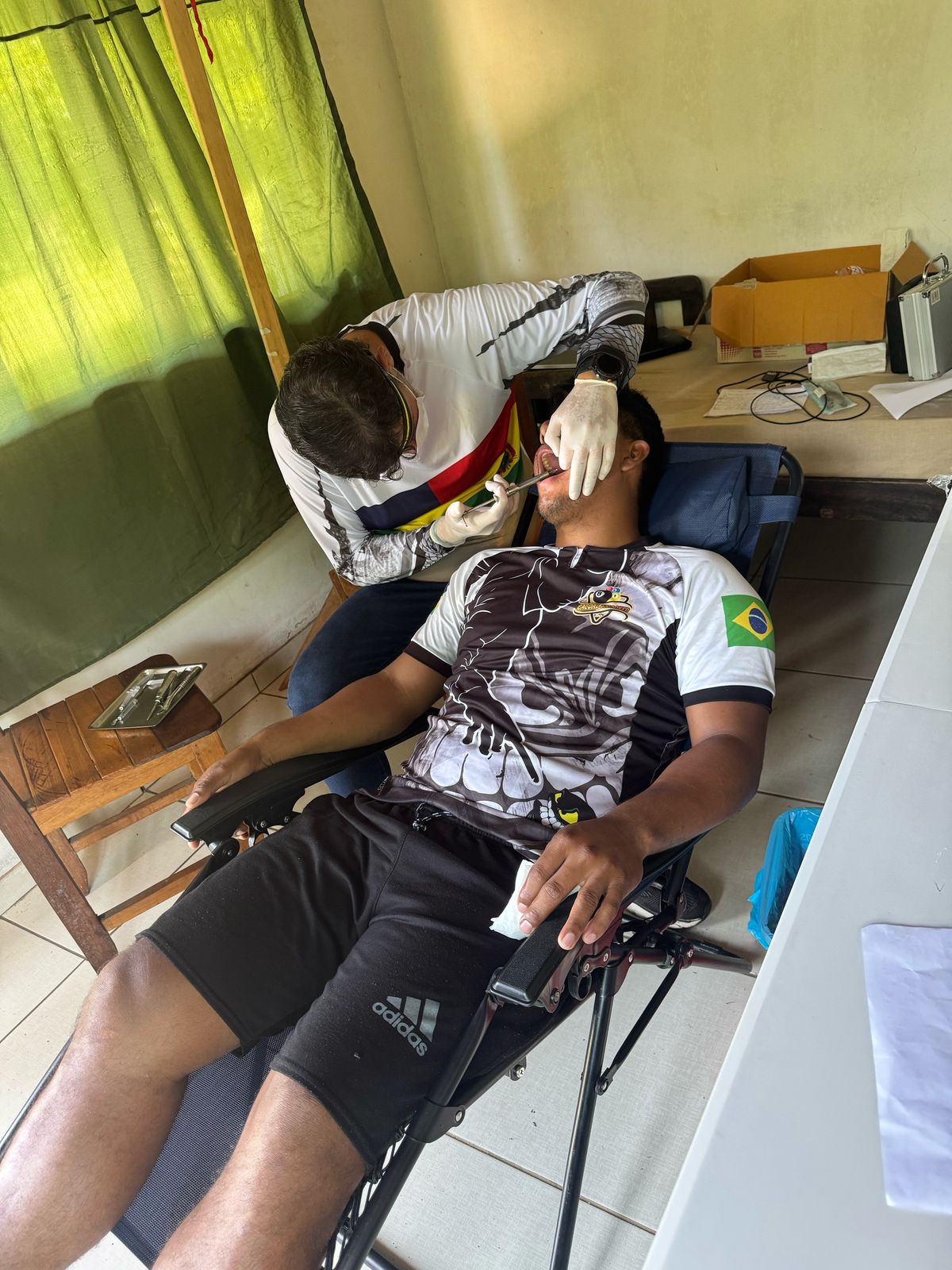 Ele informou que o projeto começou de maneira simples, com duas cadeiras de praia e equipamentos portáteis. O esforço e a dedicação da equipe logo deram frutos, e atualmente, o time conta com 11 a 15 integrantes, entre dentistas, médicos e bioquímicos. A estrutura também evoluiu: hoje, os atendimentos são realizados em um espaço cedido pela comunidade, equipado com cadeira odontológica completa, ar-condicionado e outros recursos essenciais.