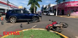 Motociclista é socorrida ao hospital após colisão no centro de Vilhena