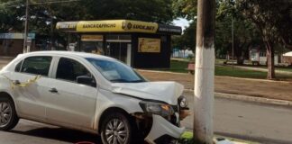 Motorista de aplicativo se distrai com celular e bate em poste...