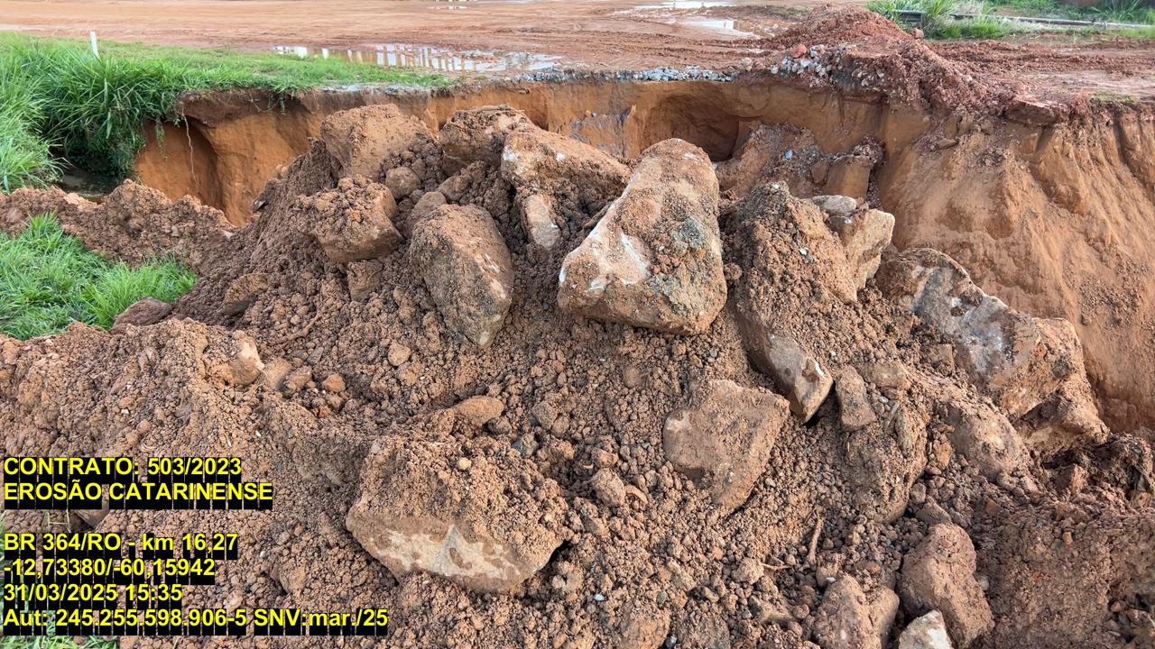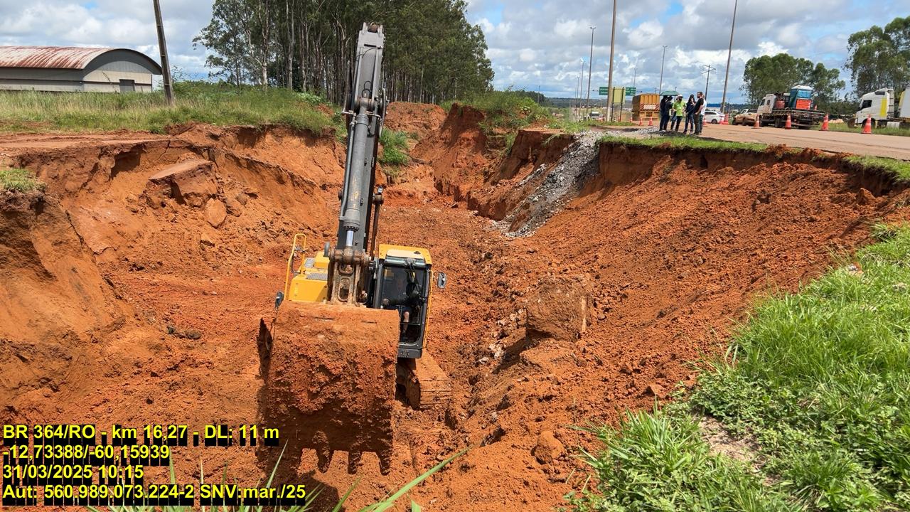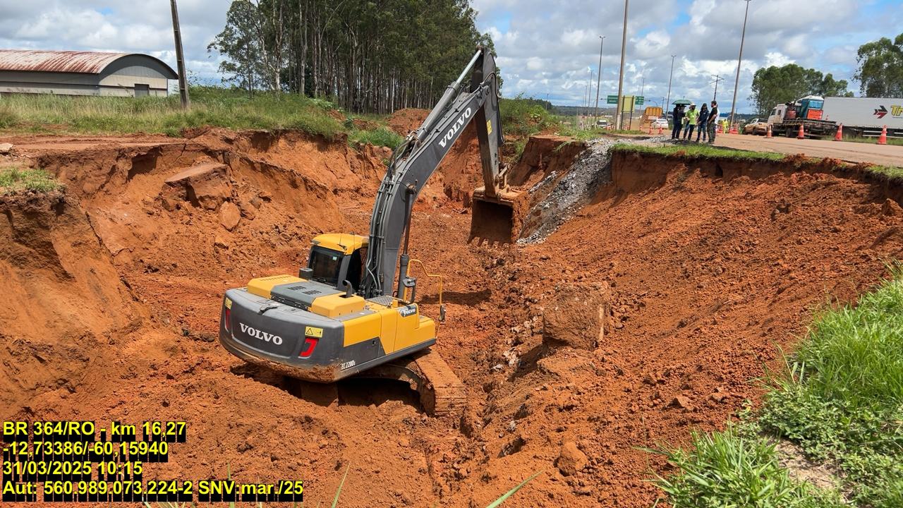 Após a veiculação da reportagem do Extra de Rondônia sobre o desabamento parcial da BR-364, o Departamento Nacional de Infraestrutura de Transportes (DNIT) iniciou reparos emergenciais para restaurar o tráfego na via.