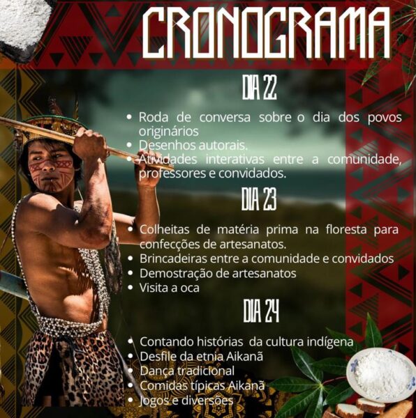 Entre os dias 22 e 24 de abril, a comunidade indígena da etnia Aikinã, localizada na área da Aldeia Tubarão, em Chupinguaia, realizará um evento especial em homenagem ao Dia dos Povos Originários, celebrado nacionalmente no último dia 19.