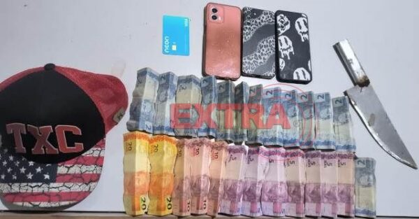 Os populares conseguiram imobilizar o suspeito até a chegada da Polícia Militar, que encontrou o indivíduo contido e, após busca pessoal, localizou os celulares e o dinheiro subtraídos.
