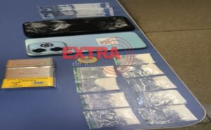 Diante da situação, os policiais realizaram a abordagem do casal, identificado pelas iniciais G. (condutor) e K. (passageira). Durante revista pessoal, foi encontrada uma carteira de cigarro da marca Dunhill no bolso do homem, contendo nove porções de uma substância branca, embaladas individualmente em sacolinhas plásticas, aparentando ser cocaína, prontas para comercialização.