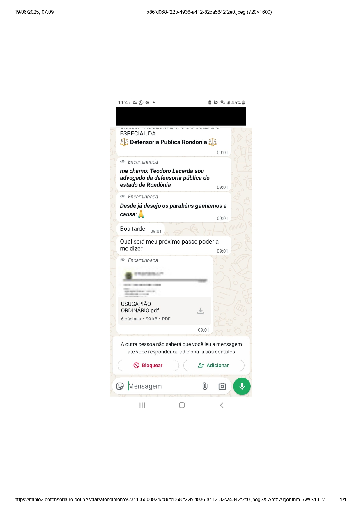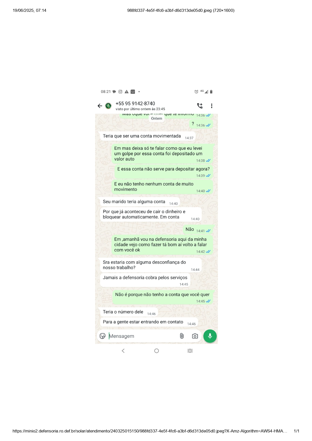 Ela informa ainda que já foram reportados diversos casos desse tipo à Defensoria em Vilhena, e que muitas pessoas buscam a instituição para confirmar a veracidade das mensagens recebidas.