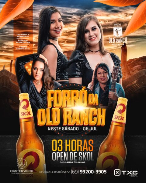 O Old Rance prepara mais uma noite especial para o público de Vilhena e região. Neste sábado, 05, acontece o “Forró do Old Ranch”, uma festa que promete agitar a cidade com atrações ao vivo e três horas de open bar de Skol, das 19h às 22h.
