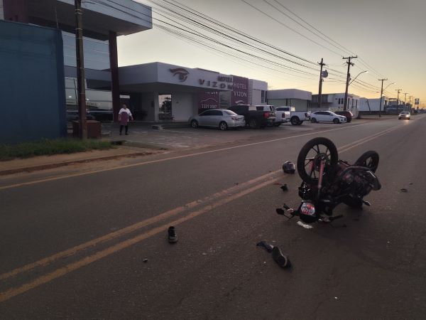 Na manhã desta terça-feira, 8 de julho, um acidente de trânsito foi registrado na Avenida Celso Mazutti, em Vilhena, nas proximidades do Hotel Vizon, envolvendo uma motocicleta e uma carreta.