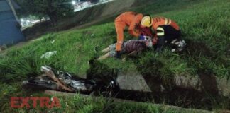 Motociclista é socorrido após cair em valeta às margens da BR-364...
