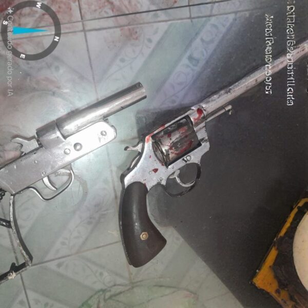 No imóvel onde ele estava escondido, além do revólver utilizado na ação, também foi localizada uma garrucha.