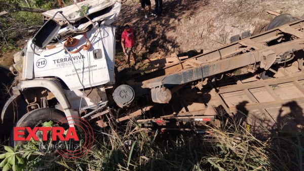 Vítima foi lançada para fora da cabine após caminhão tombar em ribanceira; ela era moradora de Rolim de Moura