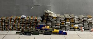 Durante buscas no interior do barraco, os policiais encontraram 147,5 quilos de maconha prensada e 26,5 quilos de cloridrato de cocaína, totalizando 174 quilos de entorpecentes prontos para distribuição. Também foram localizados diversos sacos plásticos usados para embalar as drogas, uma roçadeira a combustão, que pode fazer parte da logística do grupo criminoso, e documentos que ligam o foragido ao local.