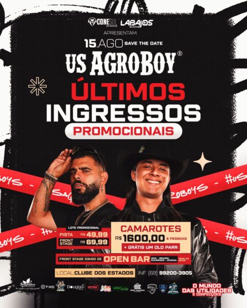 No próximo dia 15 de agosto, o Clube dos Estados será palco de um grande show nacional com a apresentação de US AgroBoy.