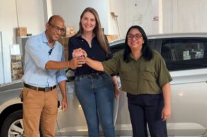A entrega contou com a presença do prefeito Valteir, do secretário municipal e da enfermeira Nuza. O veículo permitirá o transporte de profissionais de saúde e equipamentos, agilizando atendimentos no município.