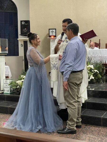 BODAS DE PRATA DE LÚCIO E KELLI MOREIRA No último dia seis, na Comunidade Nossa Senhora de Fátima em Cacoal/RO, foi celebrada pelo padre Johnnis Partelli e padre Antônio Hammes as BODAS DE PRATA do casal Luciomar Alves de Freitas e Kelli Moreira de Freitas, também nas fotos com a filha do casal Lais Moreira de Freitas