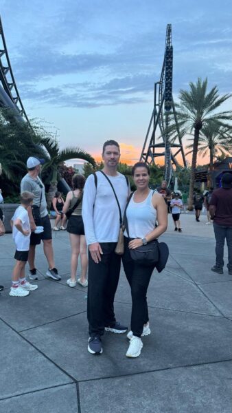 TRACK & FIELD – Troféu CACAU DE OURO 2025 Inaugurada em novembro de 2023, pelo casal empreendedor Janaína Almeida e José Goularte, a franquia TRACK E FIELD CACOAL do ramo de moda fitness, academia e corrida atende o público feminino, masculino e infantil. A marca TRACK & FIELD tem o propósito de levar aos clientes e pessoas que buscam o MOVIMENTO DO CORPO, bem estar, saúde e melhoria de qualidade de vida, que possam utilizar as peças com tecnologia Thermo Dry, qualidade e leveza. Os produtos TRACK E FIELD chama a atenção pela tecnologia exclusiva, qualidade, sofisticação e beleza em suas peças. Na foto Janaína e José Goularte em recente temporada na Disney em Orlando/EUA, se organizam para receber o tradicional Troféu CACAU DE OURO 2025 pela TRACK & FIEL CACOAL