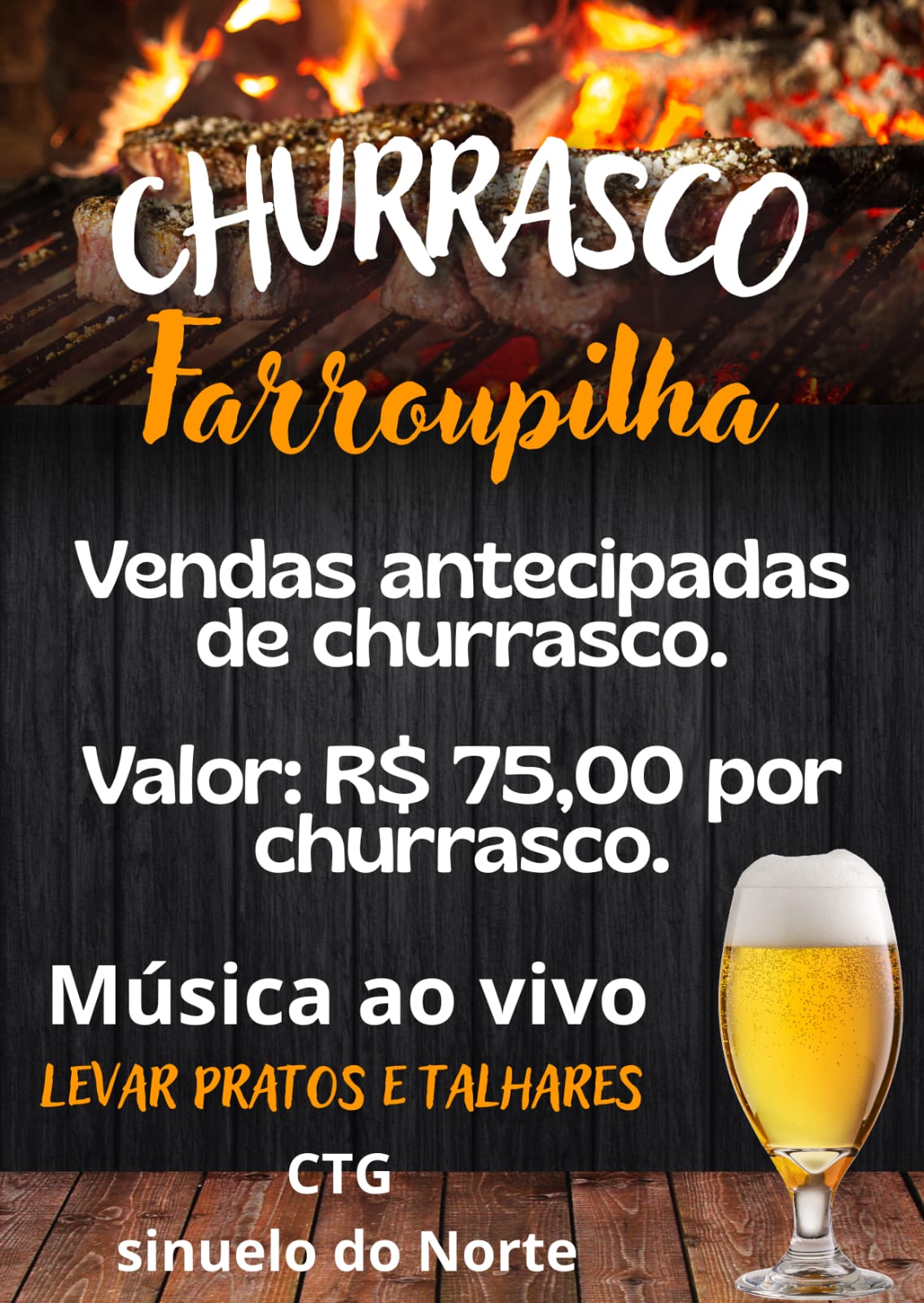 A programação segue também no domingo, 21 de setembro, no CTG Sinuelo do Norte, a partir das 21h, onde será realizado o tradicional Churrasco Farroupilha. As vendas antecipadas já estão abertas: ingressos individuais custam R$ 49,99, mesas para quatro pessoas saem por R$ 350, e cada espeto de churrasco é comercializado a R$ 75.