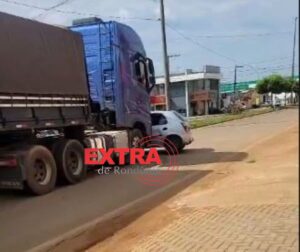 Um acidente envolvendo uma carreta e um carro Chevrolet Celta foi registrado na manhã desta quarta-feira, 24, na Avenida Jô Sato (BR-174), em Vilhena.