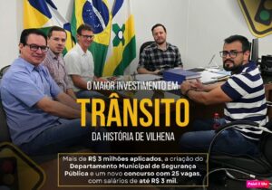 Disse, ainda, que o novo departamento ficará sob responsabilidade da Secretaria Municipal de Trânsito (Semtran), mas contará com equipe própria de coordenação. “Esse trabalho envolverá ações educativas, ostensivas e de fiscalização, atuando de forma firme e constante no trânsito de Vilhena. Este é apenas o começo. Nas próximas semanas, traremos mais detalhes sobre este projeto que vai revolucionar o trânsito da nossa cidade e, principalmente, salvar vidas!”, encerrou.