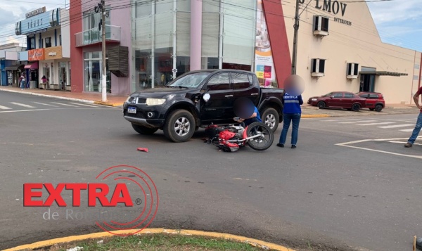 Motociclista fica ferido após colisão com caminhonete no centro de Vilhena