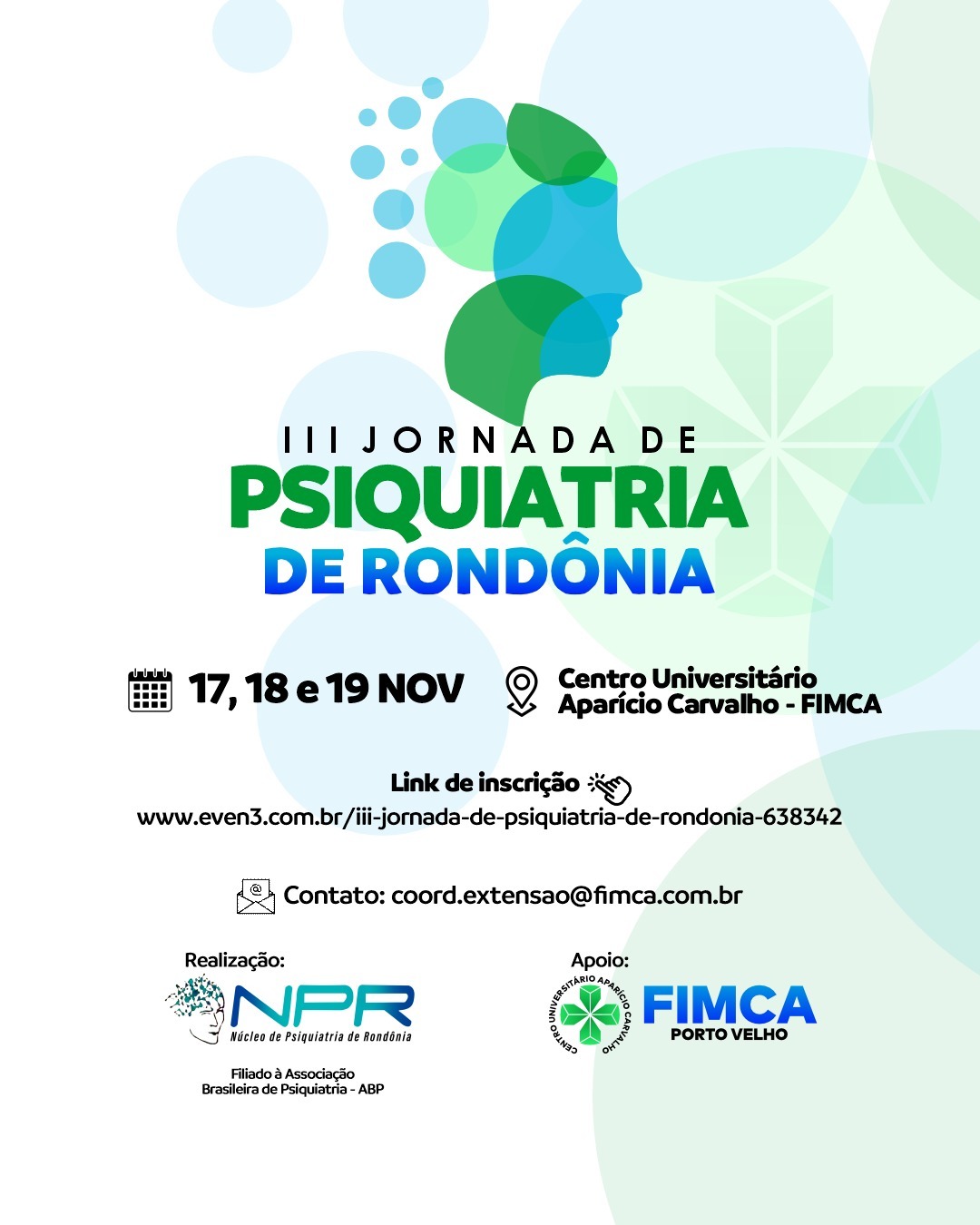 A jornada é uma realização do Núcleo de Psiquiatria de Rondônia (NPR), filiado à Associação Brasileira de Psiquiatria (ABP), e conta com o apoio do Grupo Educacional Aparício Carvalho – FIMCA. O encontro tem como objetivo promover o intercâmbio de conhecimento entre profissionais, residentes, estudantes e pesquisadores, estimulando a reflexão sobre os desafios contemporâneos da psiquiatria e o fortalecimento das práticas de cuidado em saúde mental.