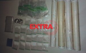 Ao verificar o conteúdo, os policiais localizaram 22 invólucros de substância aparentando cocaína, além de duas porções de maconha, embalagens plásticas e rolos de papel filme.