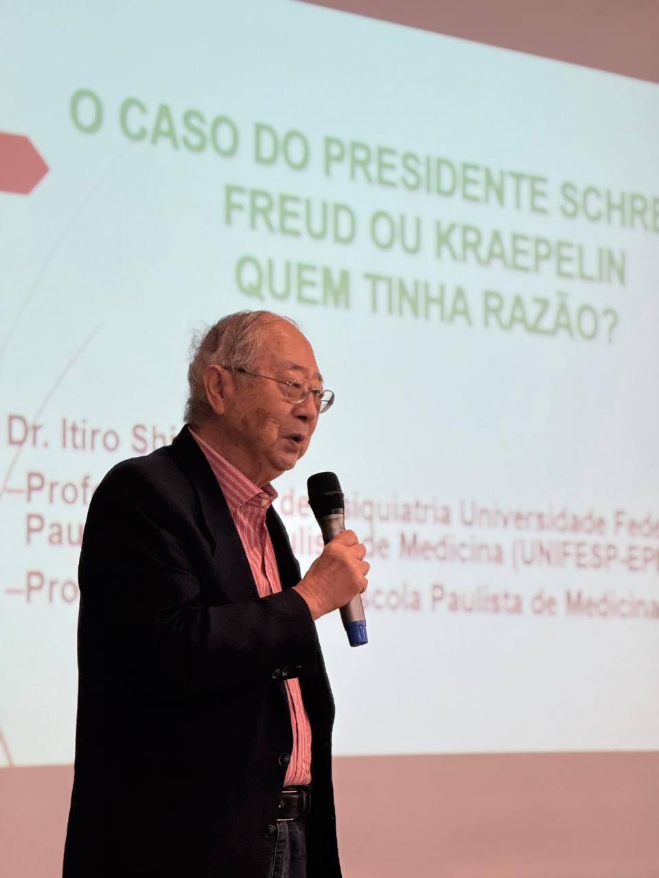Entre os convidados, destacou-se a participação do Dr. Itiro Shirakawa, referência nacional em esquizofrenia e reconhecido por sua brilhante trajetória e contribuições à saúde mental. O Dr. Itiro apresentou suas conferências para um auditório lotado, com um público atento a cada palavra. Em sua fala, trouxe reflexões sobre a evolução do diagnóstico da esquizofrenia e, no dia 18/11, conduziu uma conferência com o instigante tema “Kraepelin e Freud: quem tinha razão?”, que despertou intensos debates acadêmicos entre os participantes.