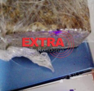 Nada ilícito foi encontrado nas buscas pessoais, porém, no ponto onde o objeto foi arremessado, os policiais localizaram um invólucro plástico contendo uma pedra de substância semelhante ao crack.