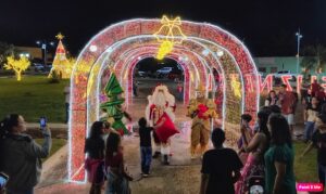 Neste sábado, 6 de dezembro, o município de Chupinguaia viveu uma noite de grande movimento e celebração com a inauguração da decoração natalina na principal praça da cidade, em frente à prefeitura municipal.