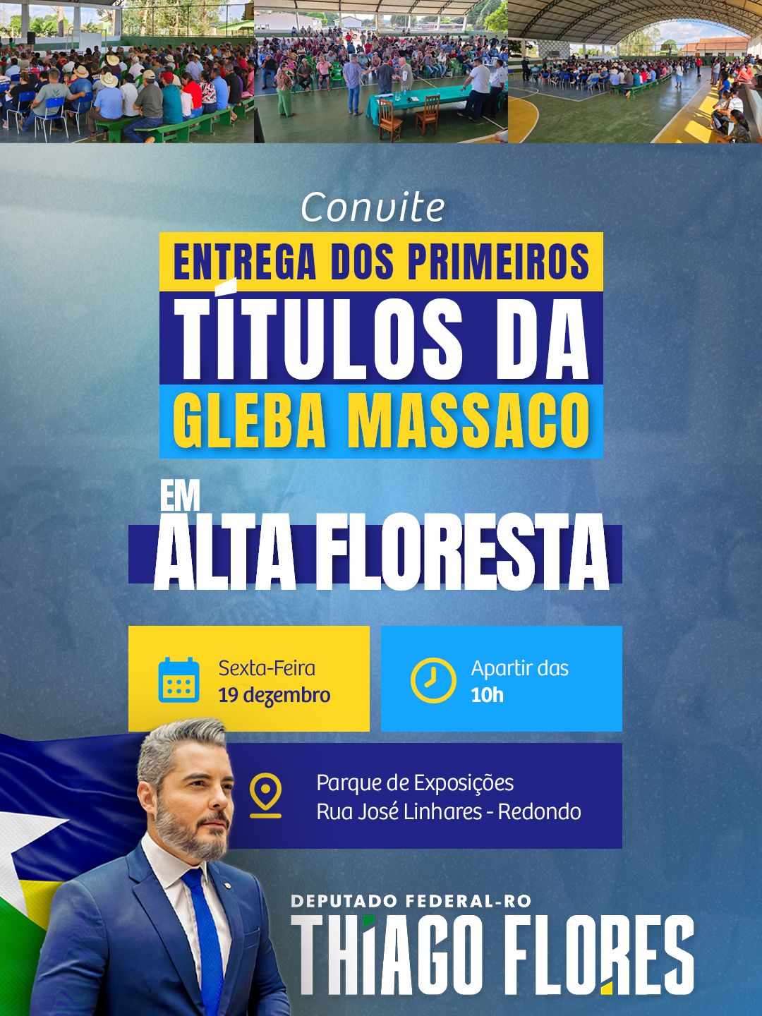 No próximo dia 19 de dezembro, a partir das 10h, o município de Alta Floresta d’Oeste será palco de um momento histórico: a entrega dos primeiros 50 títulos definitivos da Gleba Massaco, uma demanda que estava travada há anos.
