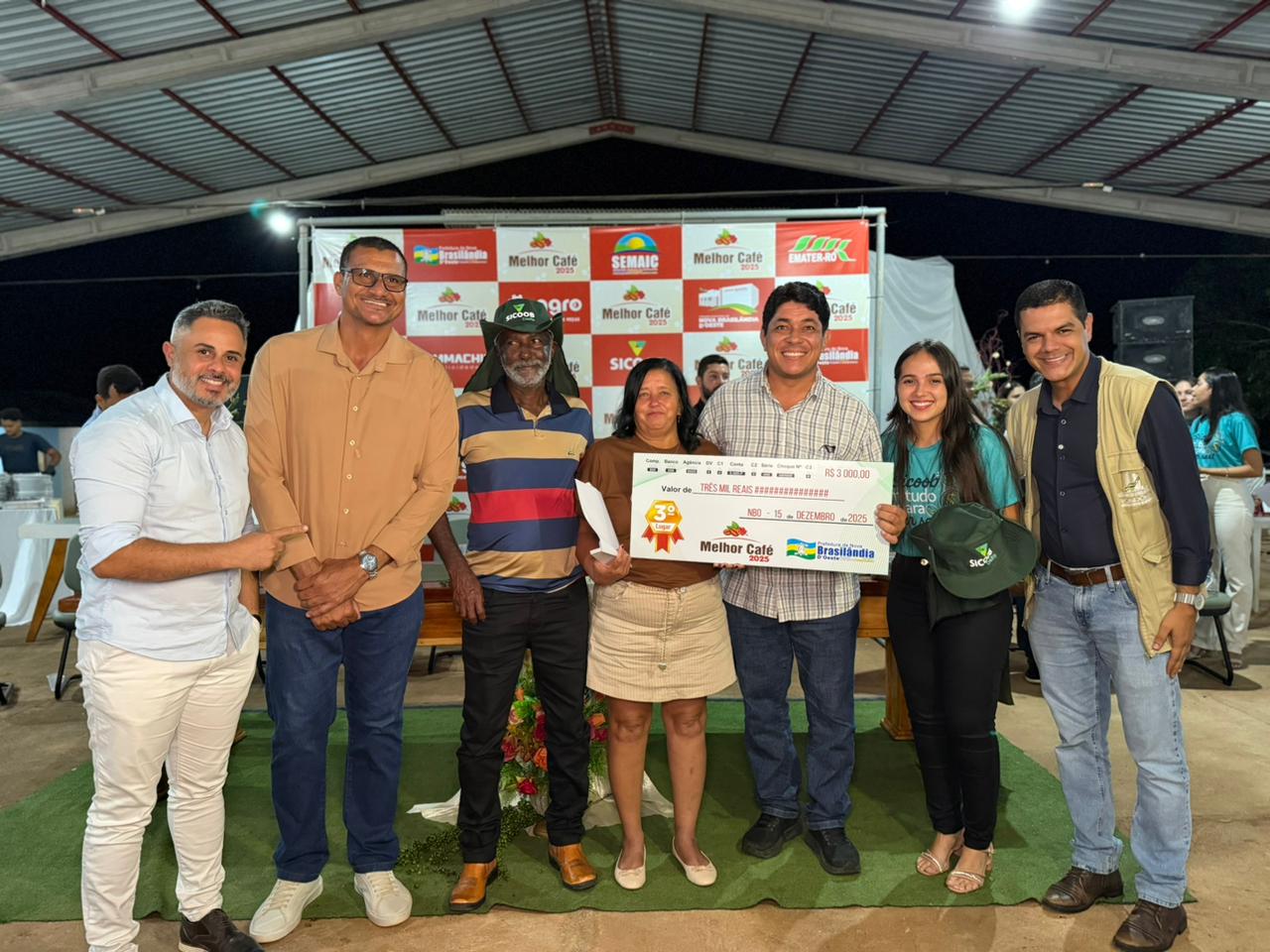 A 4ª edição da Solenidade de Premiação do “Melhor Café de Nova Brasilândia d’Oeste” foi realizada na noite desta segunda-feira (15), no CEDIV – Centro de Eventos Direito de Viver, reunindo autoridades estaduais e municipais, representantes do setor produtivo, cooperativas, empresários e produtores rurais inscritos no CONCAFÉ Estadual 2025, concurso que avalia a qualidade do café produzido em Rondônia.