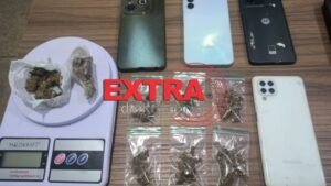 Os envolvidos relataram que estavam no local para consumo voluntário da droga. A partir das informações obtidas durante a ocorrência, a guarnição se deslocou até um endereço residencial, onde foram localizados mais entorpecentes, embalagens plásticas e indícios de comercialização das substâncias.