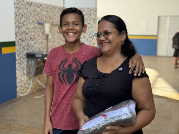 Outro relato foi o da dona Edilene Souza, mãe de Pedro Gabriel, aluno do 8º ano do ensino fundamental, e de Gabrielle Souza, aluna do 2º ano do ensino médio. Para ela, receber os uniformes para os dois filhos representa uma diferença significativa no orçamento familiar.