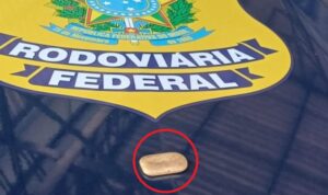 Diante das inconsistências, os policiais realizaram inspeção nas bagagens e pertences pessoais, momento em que localizaram uma barra de ouro dentro da carteira do passageiro.