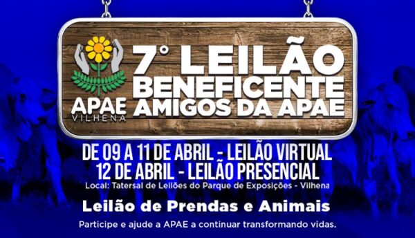 A APAE de Vilhena promove, entre os dias 9 e 12 de abril, o 7º Leilão Beneficente Amigos da APAE.