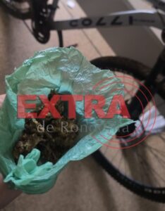 Durante a abordagem e revista pessoal, os militares encontraram no bolso do suspeito um invólucro plástico contendo várias porções de uma erva prensada semelhante à maconha, além de um aparelho celular.