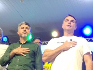 O senador Flávio Bolsonaro participou neste sábado (14) de um evento político em Ji-Paraná, em Rondônia, onde realizou o lançamento da pré-candidatura do senador Marcos Rogério ao Governo de Rondônia.