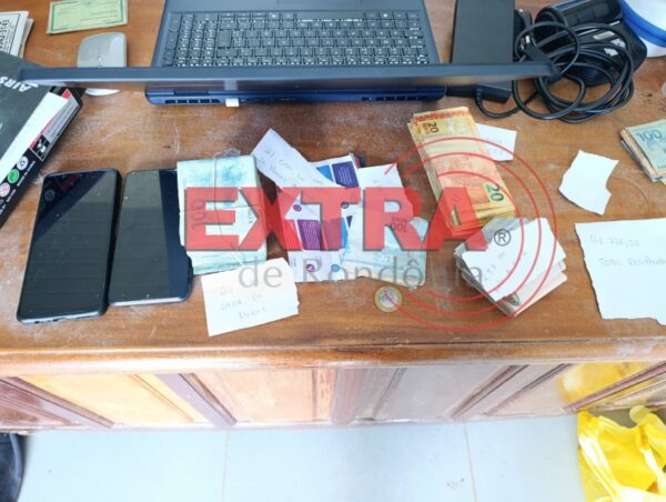 No quarto dele, escondida debaixo da cama, a polícia encontrou uma sacola contendo mais de R$ 23 mil, além de documentos da vítima, um relógio e porções de entorpecentes (pasta base e cocaína).