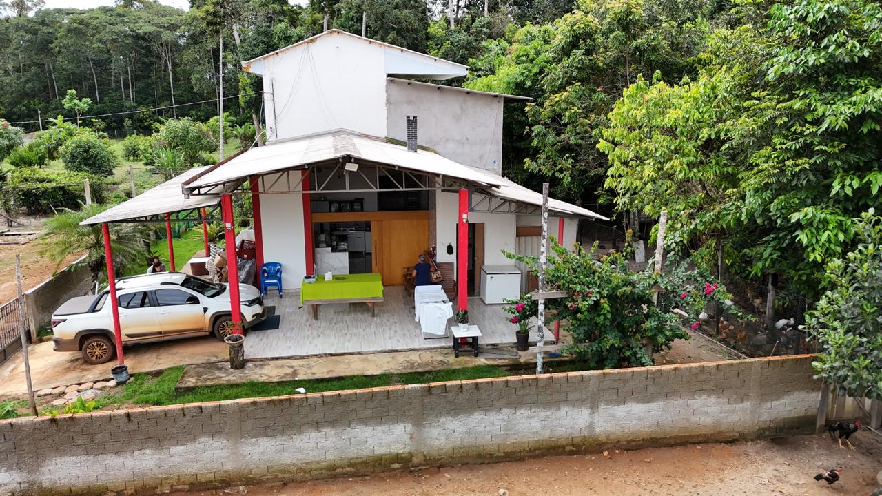 O imóvel conta também com pomar já estabelecido e três estruturas destinadas à criação de aves, ampliando seu potencial de uso para práticas de subsistência ou geração complementar de renda.