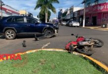 Motociclista é socorrida ao hospital após colisão no centro de Vilhena