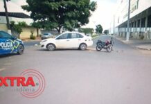 Colisão entre carro e moto deixa uma pessoa ferida em Vilhena