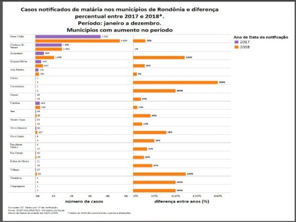 O Ministério de Saúde (MS) emitiu boletim com informações detalhadas dos casos de malária colhidos entre 2017 e 2018 no Estado de Rondônia.