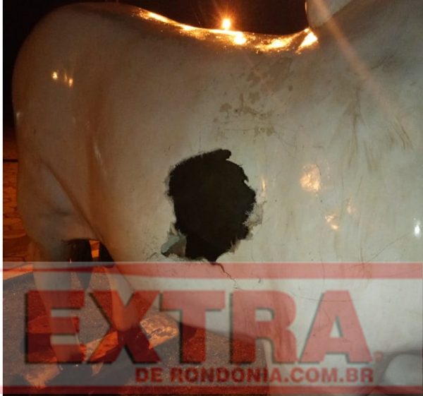 Na noite de terça-feira, 22, um homem foi preso por depredação de patrimônio público, após danificar a escultura de um boi, que fica localizada na Avenida Valter Luiz, no Centro de Chupinguaia.