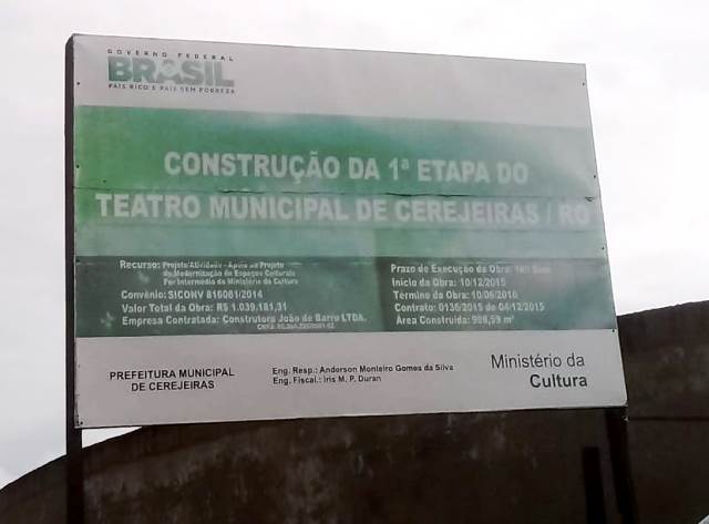 Trata-se das obras do Teatro Municipal que iniciaram em dezembro de 2015 e deveria ser entregue à população em junho de 2016.