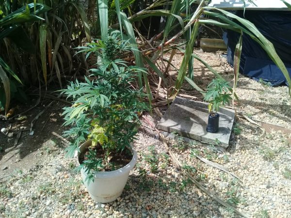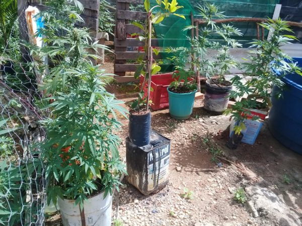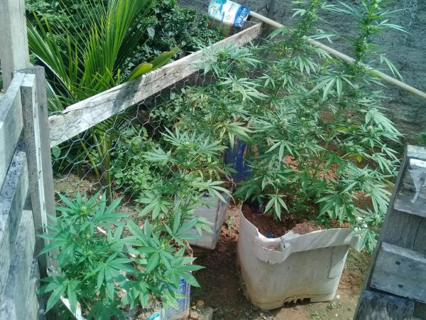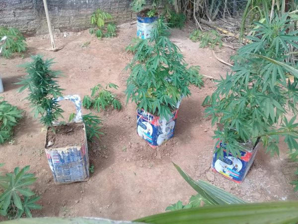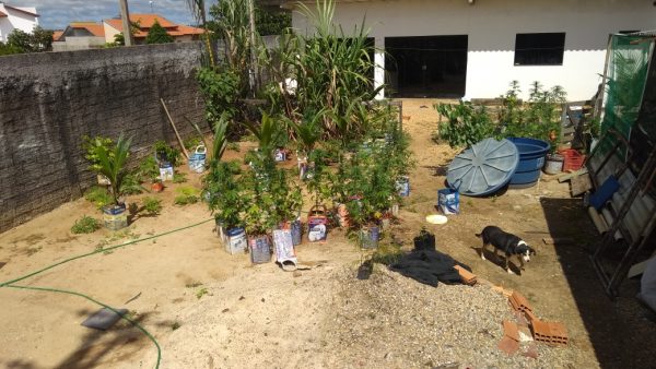 De volta à residência, os militares entraram no quintal com as chaves que a mulher portava e de pronto localizaram uma plantação de maconha, contendo 49 pés de médio e grande porte.