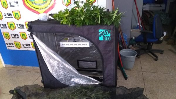 Já em um quarto de casal foi localizada uma estufa com iluminação de led, que era usada na secagem do entorpecente, assim como, vários documentos em nome de Lavozier e Sylvia.