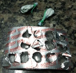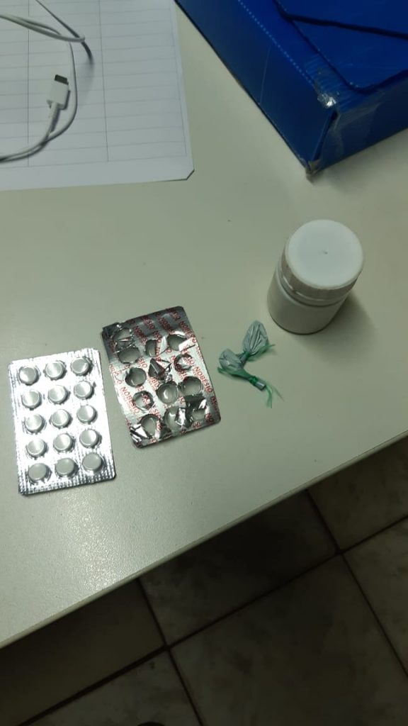Em revista feita no veículo, foram encontrados 17 comprimidos de Nobésio Extra Forte (uma das marcas mais populares de “rebite”), como também porções de cocaína.