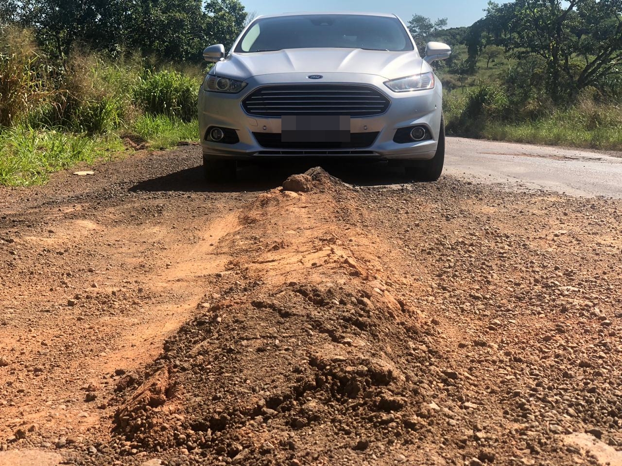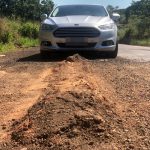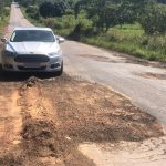 Durante o percurso feito pelo empresário, fez imagens dos buracos, crateras e até de uma carreta que devido ao cascalho no lugar de asfalto, patinava e não conseguia sair do lugar.