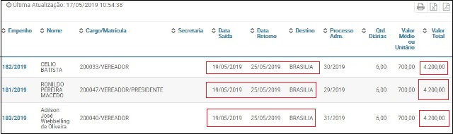 Três vereadores de Vilhena vão gastar exatos R$ 12.600,00 (Doze mil e seiscentos reais) dos cofres do município com a utilização de seis diárias para ir até a cidade de Brasília (DF).