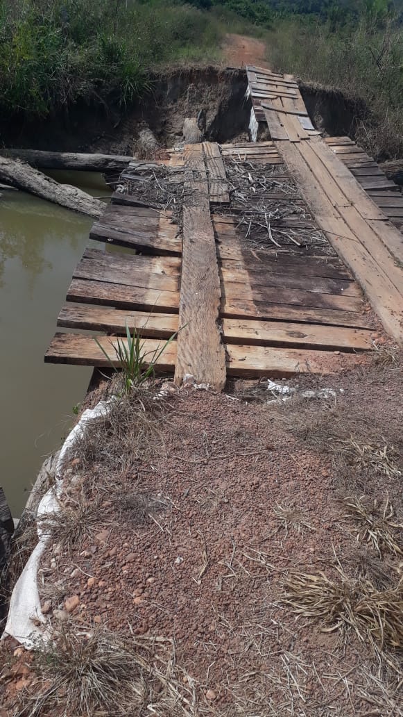 De acordo com um agricultor a ponte localizada na linha 5 Rumo Escondido, conhecido por “Baxão do Escondido” está totalmente sem condições de trafegabilidade e a qualquer momento vai desmoronar podendo provocar acidentes graves.