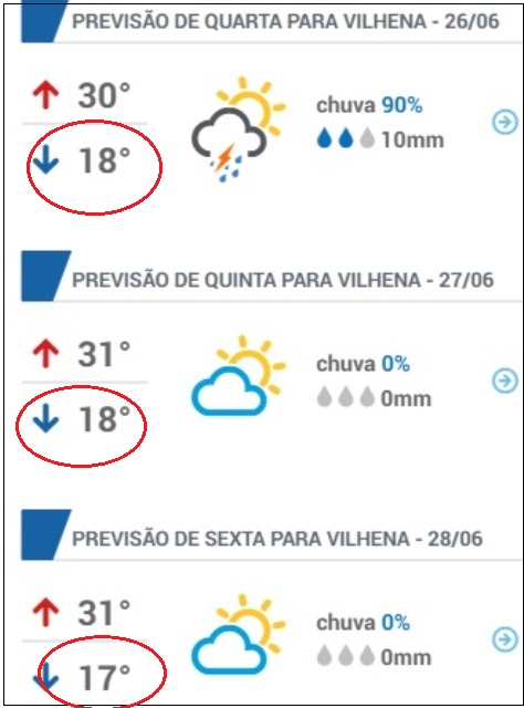De acordo com o site “Clima Tempo”, a previsão é que já nesta quarta-feira os termômetros marquem mínimas de 18° C, com a mesma temperatura na quinta-feira, mas caia na sexta-feira, com 17° C.